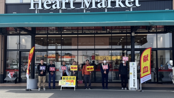 今年度2回目の献血ACTをウエストランド店前で実施し、プラカードを手に買い物客らに献血・・・