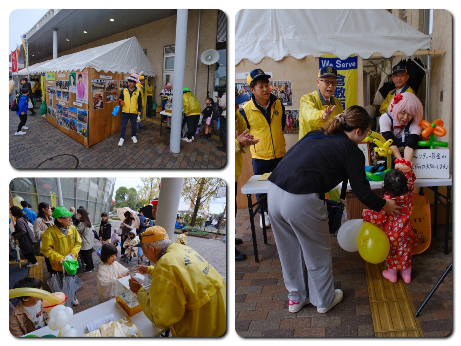 アトラクションとして実施したバルーンアートでは、岡山の芸人・京極さんをお招きし、子供達の為に花・動物・剣などを制作いただきました。雨にもかかわらずチビッコ達に大変な人気で、終日盛況となりました。募金箱を設置して臓器バンク・アイバンク支援募金を募ったところ、メンバーのみならず、バルーンアートを楽しみに来られた親子連れの方々からも多くのご厚志を頂きました。
