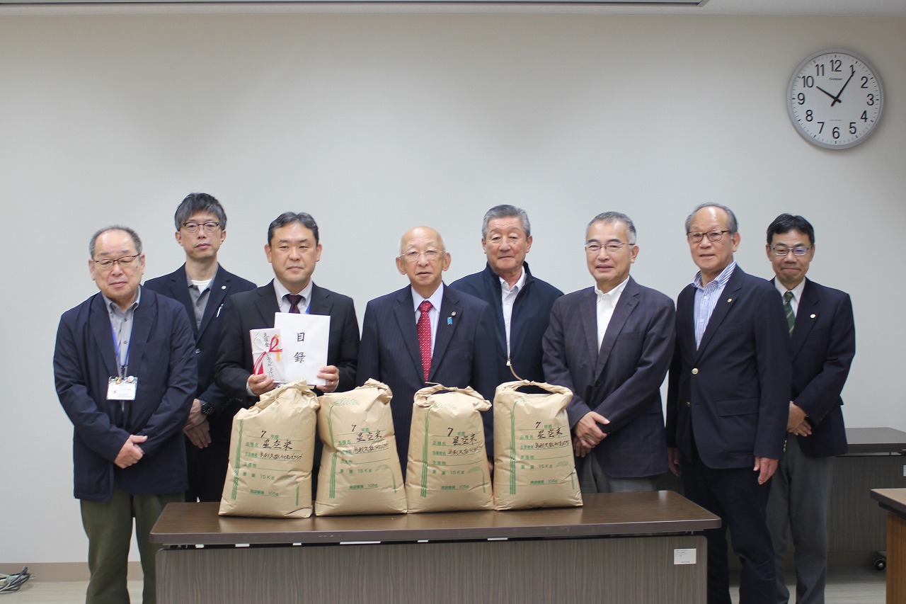 去る11月7日、地域食堂ネットワークの事務局がある鳥取市中央人権福祉センターにおいて、クラブより支援金と7R1Z 6LC合同で稲刈りをして収穫したお米を寄贈いたしました。