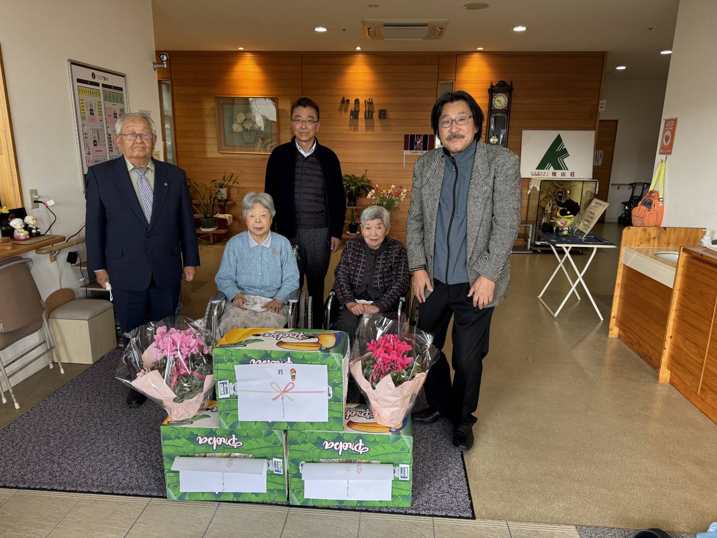 特別養護老人ホーム、檜山荘・十字園・花岡荘を慰問し、バナナとお花を贈りました。この3施設への訪問も恒例となっています。